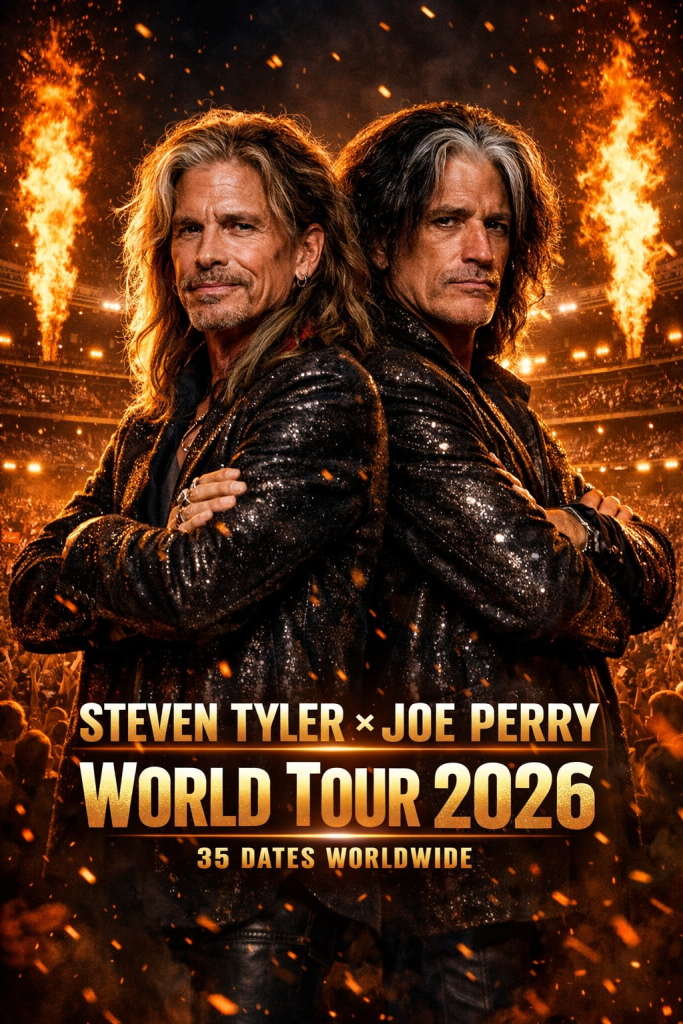 Steven Tyler and Joe Perry — two towering architects of American rock & roll — are officially returning to the world stage together. After years of speculation, silence, and whispered hope among fans, the legendary duo has announced a 2026 World Tour, a historic reunion that will span 35 landmark concerts across three continents.